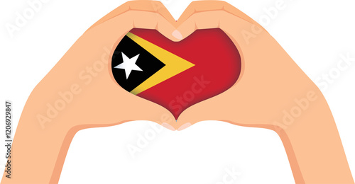 Timor-Leste independence day illustration. Hands forming a heart shape with the flag inside.
