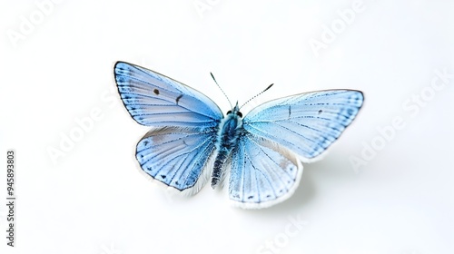Tiny Blue Butterfly Resting Peacefully with Closed Wings on White Background