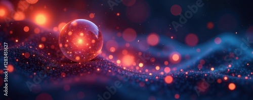 Tiny glowing orbs suspended in mid air amidst swirling mesh of abstract technology particles, mesh, abstract