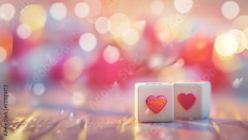 Tiny heart icons set against a softly blurred, colorful background with a warm, romantic glow creating a delightful atmosphere
