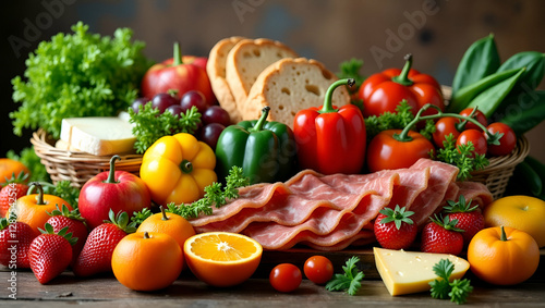 Title: A Vibrant and Diverse Assortment of Food Featuring a Fusion of Flavors