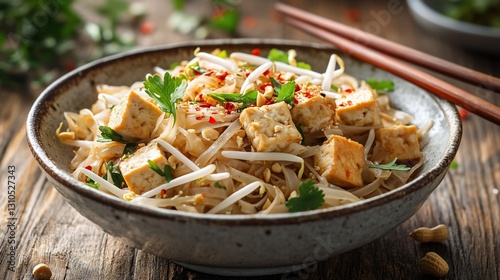 Tofu Pad Thai Noodles, Asian Cuisine, Wooden Table