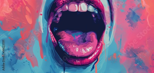 Tongue flat design, front view, sensory theme, water color, Complementary Color Scheme