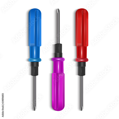 Tool kit, screwdrivers of bright colors on white background, vector illustration