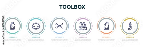 toolbox concept infographic design template. included gallon oil, ear protection, lug wrench, wastes, jerrycan, carpenter cutter icons and 6 option or steps.