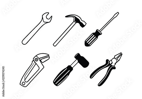 Toolbox Icons Set - Professional Tools and Equipment Vector Illustrations