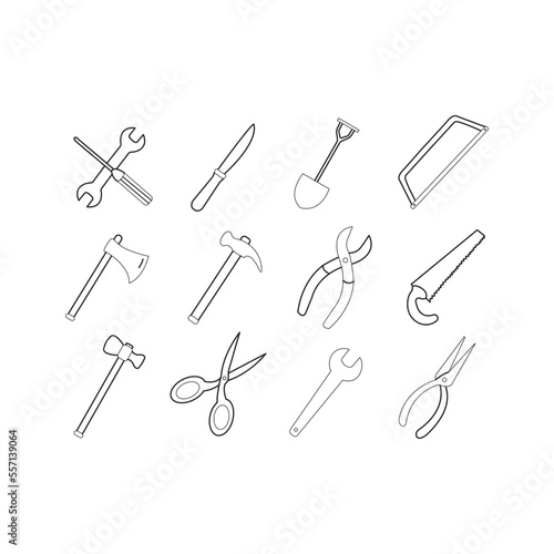 Tools icons set in flat style. tools icon set isolated on white background. Perfect for coloring book, textiles, icon, web, painting, books, t-shirt print.