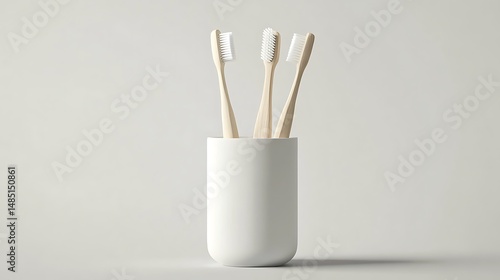 Toothbrush Holder Mockup with Three Different Toothbrushes on White Background