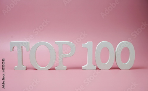 Top 100 word alphabet letters on pink background