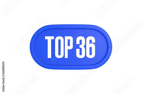 Top 36 sign in blue color isolated on white background, 3d illustration.