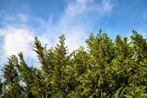 Top of green trees and sky background