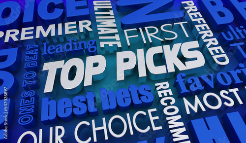 Top Picks Best Bets Recommended Choices Favorites Word Background 3d Illustration