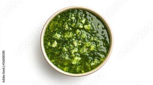 top view Bowl with broccoli soup isolated on white empty background, top view