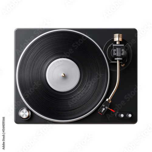 Top View of a Black Turntable with Vinyl Record record player music audio
