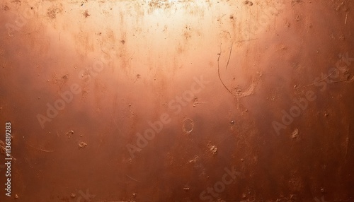 Top View of a Copper Metal Surface with Visible Scratches and Dings