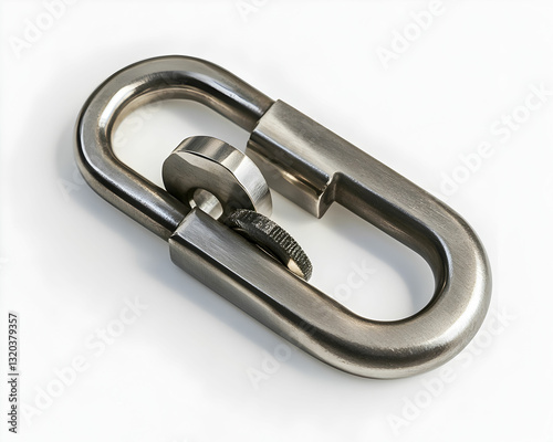 Top view of a steel shackle with a smooth finish and a pin lock, displayed on a plain white background