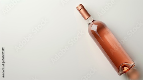 Top view of an expensive wine bottle with elegant packaging, isolated on a white surface