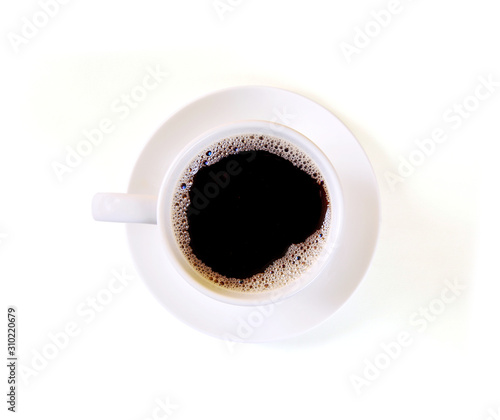 Top view of Cup of coffee on white background, Black coffee in a coffee cup top view isolated on white background