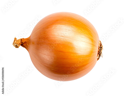 Top View of Fresh Onion Bulb, Clean Round Shape, Isolated on White Background
