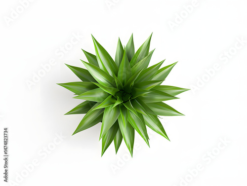 Top View of Green Pineapple Crown Isolated on White Background