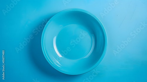 Top view of isolated of colored background empty round blue plate for food Empty dish with space for your design : Generative AI