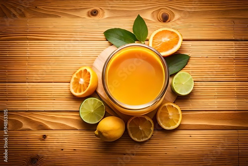 Top view of lemon juices in glass isolated on rustic wooden background