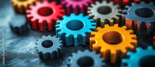 Top view of people blocks and gear icons, teamwork concept, growth strategy, collaboration, business development, teamwork and innovation imagery