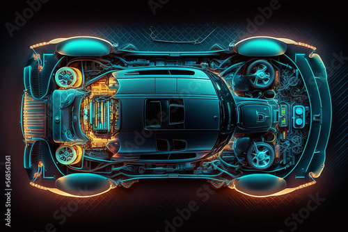 Top view of the car. Futuristic car service, scanning and auto data analysis. Car auto service, Modern design, diagnostic auto