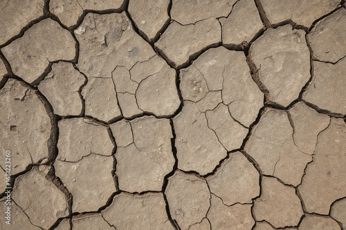 Top-down perspective of cracked earth symbolizing dryness and deterioration for a backdrop or graphic theme
