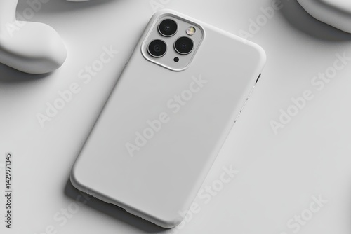 Top-down view of a modern white smartphone case.