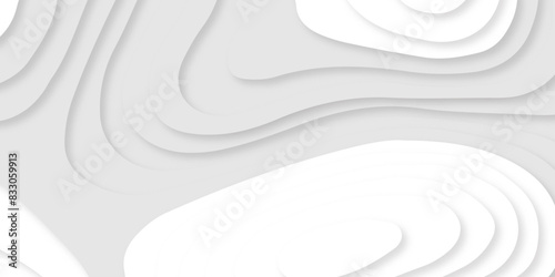 Topographic canyon geometric map relief texture with curved layers and shadow. Vector abstract white paper cut banner. Abstract background vector