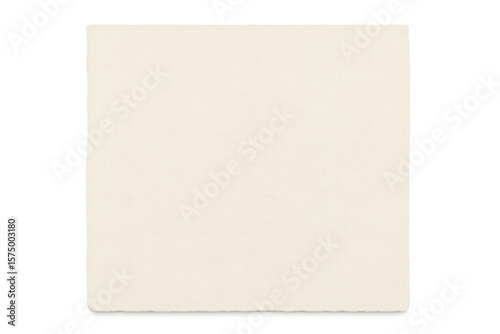 Torn beige paper sheet with ragged edges, showcasing blank textured surface against transparent background, ready for graphic design placement