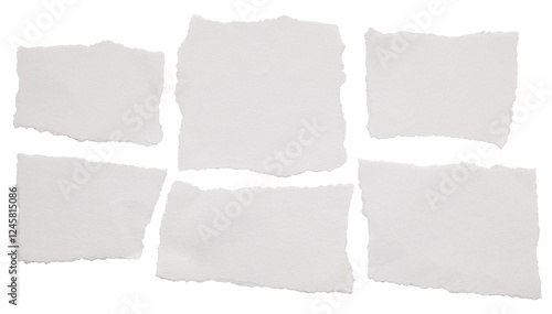 torn blank pages with uneven texture edges. set of ripped white paper sheets png isolated on transparent background. document or newspaper mockup