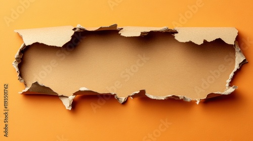 Torn Cardboard Frame on Bright Orange Background for Creative Ideas