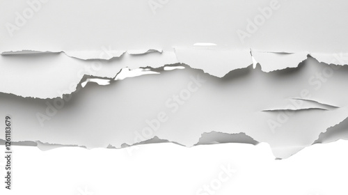 Torn horizontal strip of white paper with transparent background revealing checkered pattern