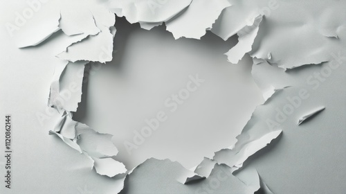 Torn paper backdrop with hole in studio setting for creative copy space and unique design concepts