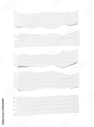 Torn pieces of notebook paper sheets isolated on white background