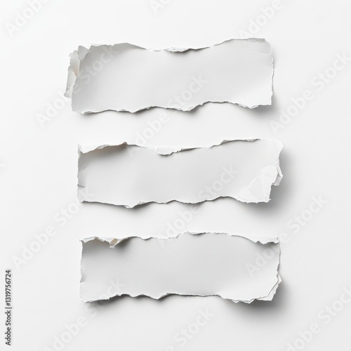 Torn pieces of white paper on a plain background