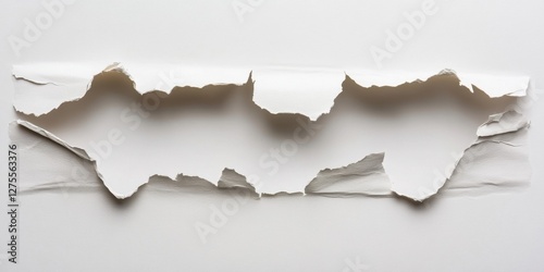 Torn white paper with irregular edges creating a textured border on a clean white background ideal for copy space and minimalist designs