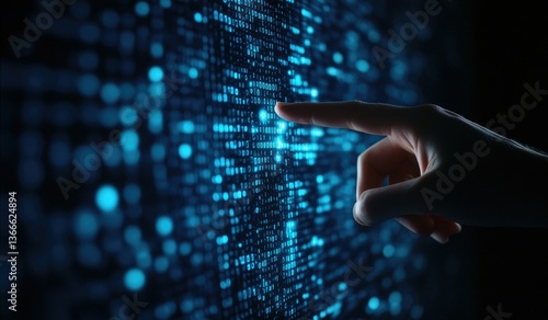 Touching Digital Data Point with Finger Representing Artificial Intelligence Concept