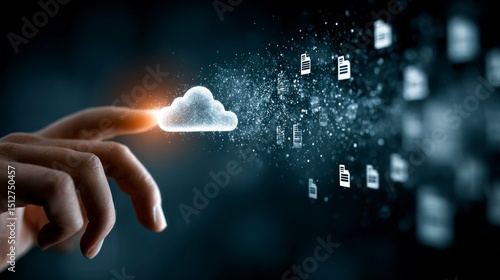 Touching the Clouds A Hand Interacts with Digital Data Storage and File Transfer Technology
