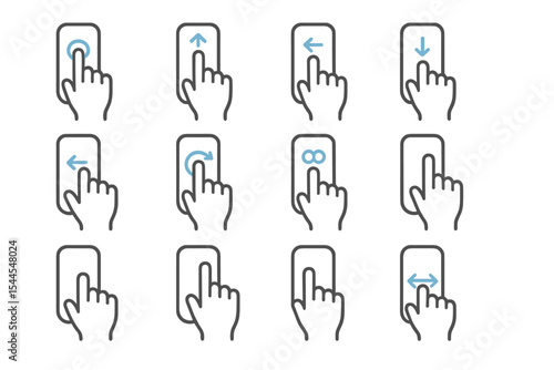Touchscreen gesture icons: swipes, rotations, and multi-directional arrows