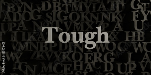 Tough - Stock image of 3D rendered metallic typeset headline illustration. Can be used for an online banner ad or a print postcard.