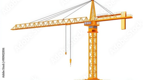 Tower Crane Construction: Yellow 2D Flat Vector Art in 3D Isolated on White Background