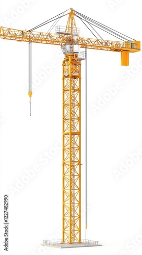 Tower Crane isolated on white background. Heavy Machinery. Construction Crane. Tall Crane Structure. Tower Crane Design Element. Construction Equipment. Tower Crane isolated for Designers.