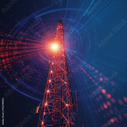 Tower of communication reaching into the digital world