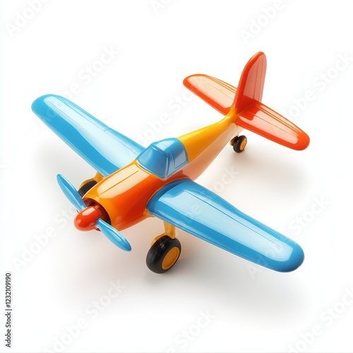 Toy airplane isolated on a white background, perfect for design compositions, product presentations, or creative montages.