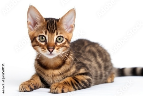 Toyger Kitten On White Background. Generative AI