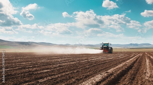 Tractor spraying field.