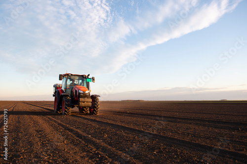 Tractor spreading artificial fertilizers